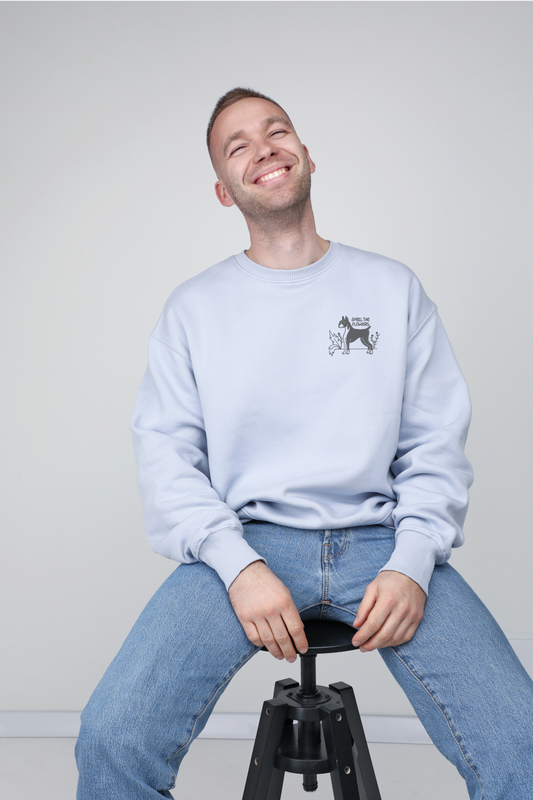 Smell the flowers | Džemperis su išsiuvinėtu šuniu | Oversize | Unisex