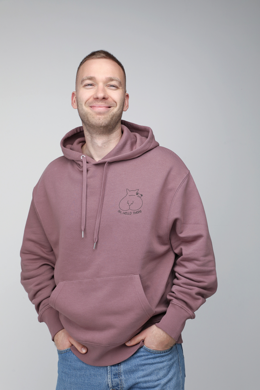 Oh, hello there | Džemperis su išsiuvinėtu šuniu, su kapišonu | Oversize | Unisex