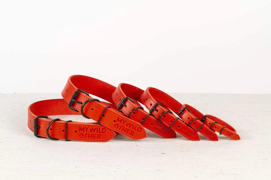 Raudonas odinis šuns antkaklis