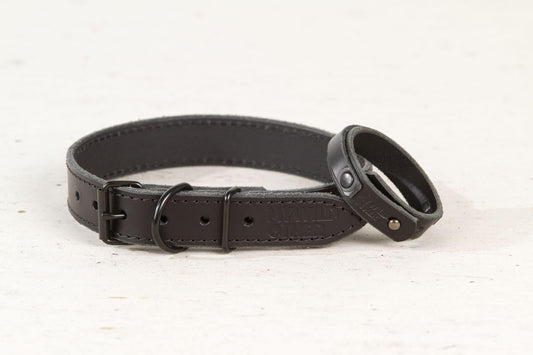 Juodas odinis šuns antkaklis