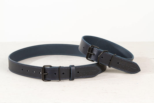 Mėlynas odinis šuns antkaklis