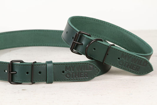 Žalias odinis šuns antkaklis