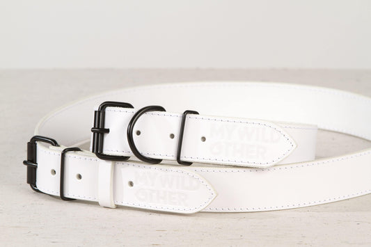 Baltas odinis šuns antkaklis