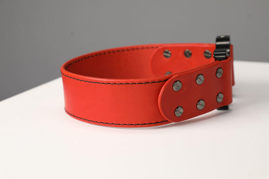 <tc>Nebeturime</tc>Raudonas odinis šuns antkaklis su COBRA® sagtimi