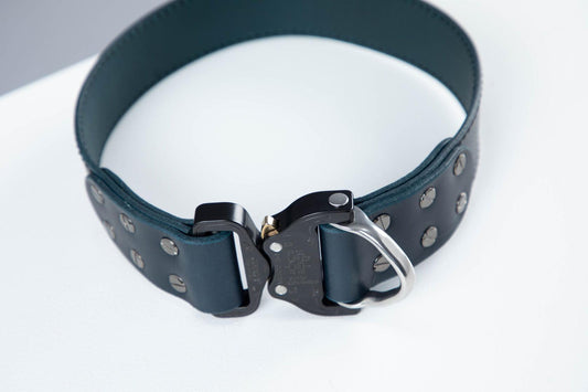 Mėlynas odinis šuns antkaklis su COBRA® sagtimi