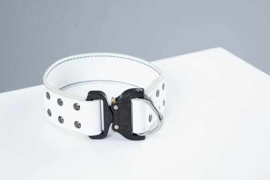 <tc>Nebeturime</tc>Baltas odinis šuns antkaklis su COBRA® sagtimi