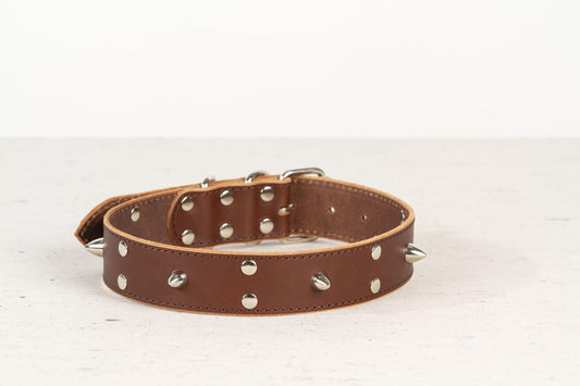 Odinis šuns antkaklis su spygliukais, rudos spalvos
