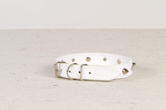 Odinis šuns antkaklis su spygliukais, baltos spalvos